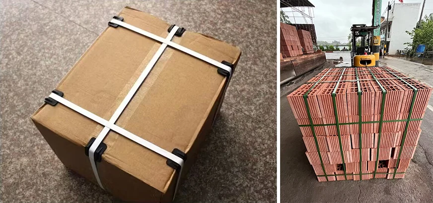 Pakkimistööstused karbist väljast/terava servaga kaupade jaoks koos rihmadega.